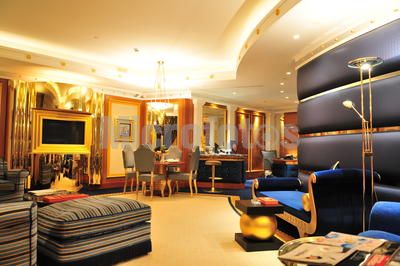 在第25层,最豪华的780平方米的总统套房更是华丽非凡,不但有私人的宴客厅、带着旋转床的卧室、水流按摩浴缸、家庭影院,还有管家供宾客24小时传唤,出入有专用电梯。