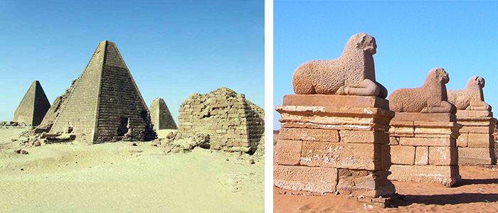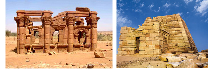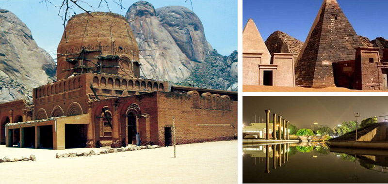 位于纳迦(Naga)、穆萨瓦拉特•埃尔苏弗拉(Mussawarat Elsufra)、皇城(Royal city)和埃尔比拉伊尔(Elbijrawyia)的、属于国王和王后们的金字塔、神庙和宫殿。