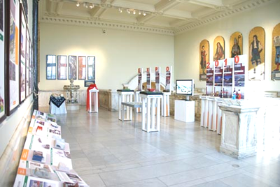 沿着走廊扶手,一组"E、X、P、O、2、0、1、0"立体字展板,凸现了上海世博会的概念,一幅幅上海历史与现在图片,正演绎着“城市,让生活更美好”的世博主题。LCD屏播放着虚拟片《城市的畅想——上海世博会漫游》。20个国家已确认参加上海世博会的方案小模型,精巧而夺目,宛如张张名信片,在早春的上海周传递世界的喜悦之情,并预示着未来的成功。