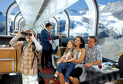 瑞士素以精密的机械制造闻名,运用到铁路上,更是做得尽善尽美。在瑞士的铁路网上,不仅跑着最现代最先进的高速列车,雍容华贵的观景列车,惊险刺激的窄轨列车和卡齿列车,浪漫敞篷的夏日列车,且在一些山区,有着百年历史的蒸气机车仍然神气而高质量的运营着。瑞士铁路网非常完整且火车班次频密,到站非常准时,火车到站的时间甚至可以用来校对手表的时间。在瑞士乘火车旅游是一种舒适、悠闲、老少皆宜的旅游行为。