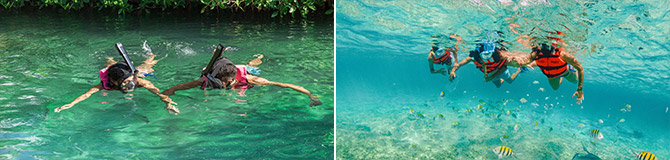 谢哈公园(Xel-Há Park)是藏于世间独一份的秘境,堪称大自然的鬼斧神工!谢哈河道巡游从葱郁叠翠的红树林间启程,每一段旅程都浸满治愈和趣味。你可以换上装备纵身跃入碧波,沉浸式邂逅水下斑斓盛景,尽情享受这份独属于谢哈的松弛与惬意!