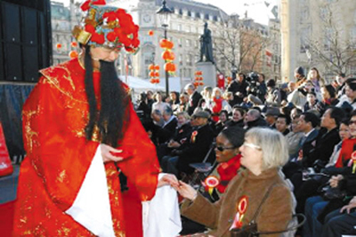 英国政府对华人庆祝春节的支持可谓“不遗余力”。据说,开始华人庆春活动主要在唐人街,规模不大,后来因人满为患,伦敦政府出面数度扩场,才有了如今名播欧洲的迎春盛会。