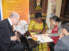 中国商务集团(China Business Network)旗下的中商世界游(CBN Travel)和世界游网(World Travel Online)受组委会特别邀请也参加了此次专业盛会。世界游网还联合牙买加旅游局、波多黎各旅游局、马达加斯加旅游局、AQP秘鲁豪华游专业操作公司、加纳非洲网络旅游公司、突尼斯非洲之旅、硬石摇滚餐厅共同设展,吸引了大量来访观众的浓厚兴趣,纷纷驻足了解咨询。作为特邀的国内知名旅游媒体的世界游网记录下了此次展会的精彩瞬间。 中商世界游+世界游网精美展台 加纳非洲网络旅游公司常务董事玛丽·达德兹女士向组团社介绍组团加纳的相关业务