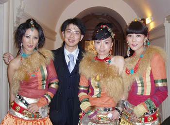 中国藏族少女阿佳组合与中商世界游工作人员合影