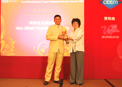 2009年9月15日,即今日起,阿联酋正式成为中国公民组团出境游的目的地(ADS),同时阿联酋最大的酋长国阿布扎比的旅游机构——阿布扎比旅游局(ADTA)也于近日喜获《中国旅游业界奖2009》中的“最佳目的地推广”(Best Destination Marketing)大奖,并名列“最佳会奖旅游目的地市场推广”(Best Meeting & Incentive Destination Marketing)前三名。