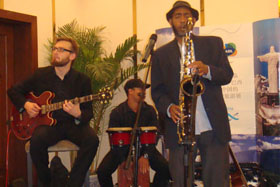 在鸡尾酒交流会上,现场探戈表演,拉美音乐演奏,生动展现,夺人眼球。伴随着欢快的音乐,欣赏着动感的探戈,感受南美风情充满了会场,现场气氛被推向高潮。
