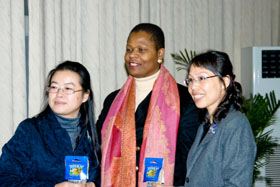 会后,现场举行了抽奖活动,布朗女士向三位获奖者赠送著名的蓝山咖啡并与获奖者合影留念。