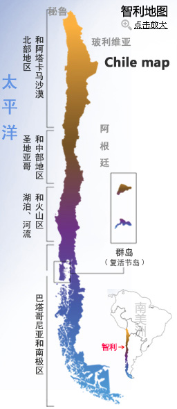 Famous attractions: Easter Island, Torres del Paine, Cerro San Cristobal, Sewell Mining Town and Humberstone, etc.。